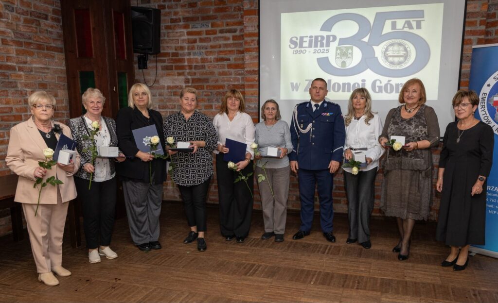 Komendant Miejski Policji w Zielonej Górze mł. insp. Tomasz Szuda wziął udział w obchodach 35-lecia Stowarzyszenia Emerytów i Rencistów Policyjnych w Zielonej Górze. Wśród uczestników byli emerytowani komendanci miejscy, a także zaproszeni goście, sympatycy, przyjaciele i oczywiście członkowie stowarzyszenia. Komendant Szuda zostal wyróżniony pamiątkowym medalem, ale także sam uhonorował byłe policjantki-emerytki. Dobrą okazją do tego jest obchodzony w tym roku jubileusz 100-lecia Kobiet w Policji. Komendant wręczył paniom pamiątkowe listy gratulacyjne.